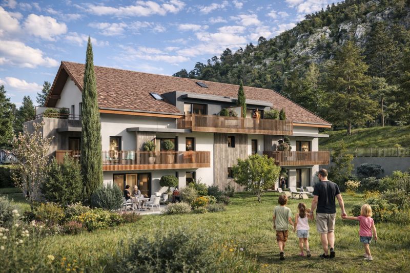 À proximité des commerces, des écoles, des plages et de la voie verte, chaque logement s'ouvre sur un balcon, une terrasse ou un jardin privatif. Certains appartements offrent des vues dégagées sur la montagne, dans un cadre naturel entre lac et reliefs.