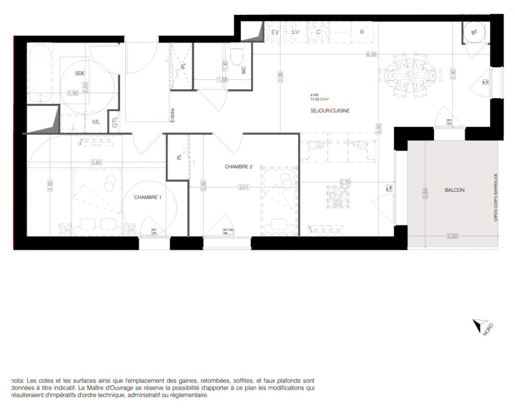 226 999€ Appt. T3 60m2 2ème