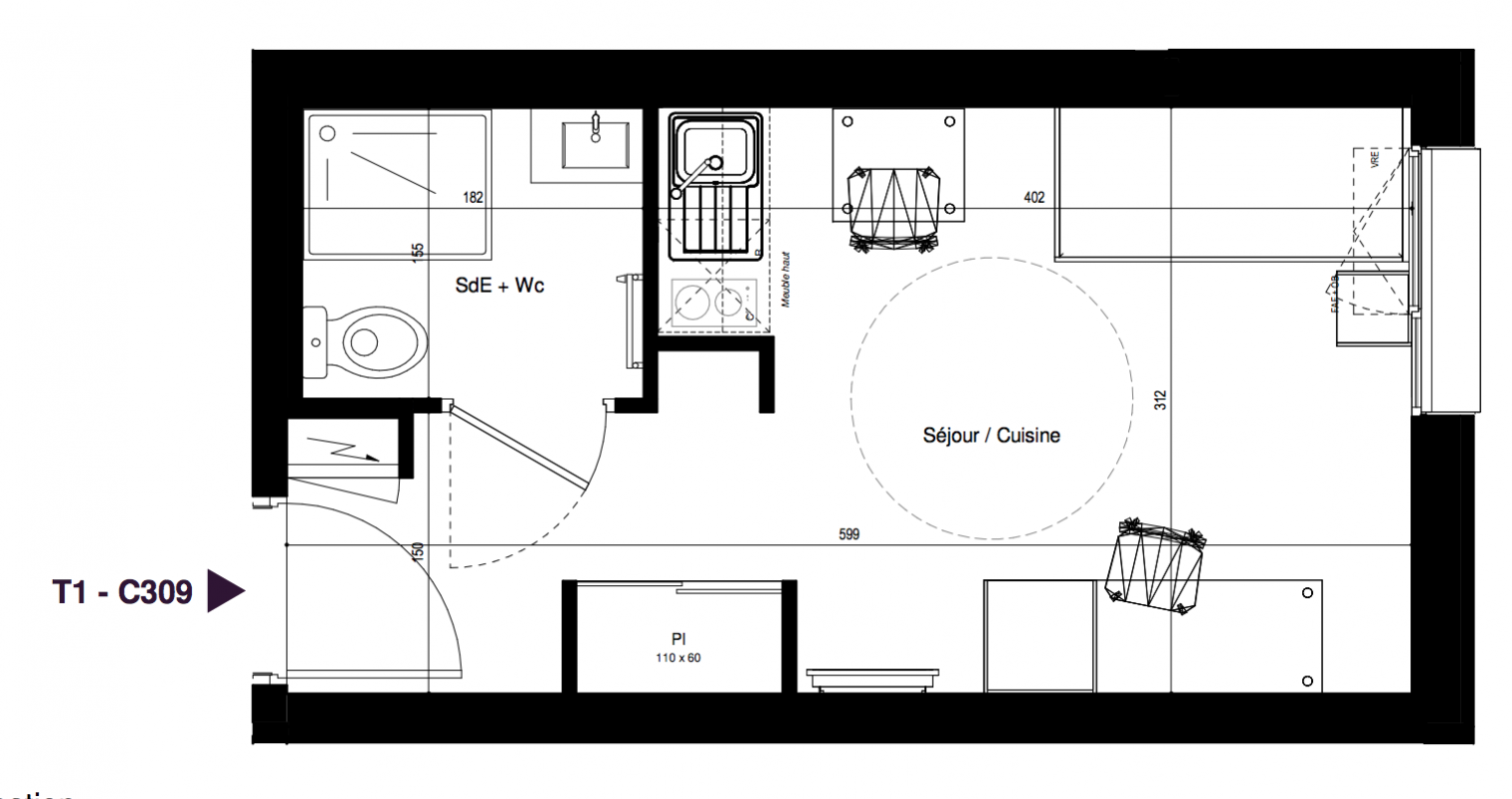 114 247€ Appt. Studio 17.91m2 1er