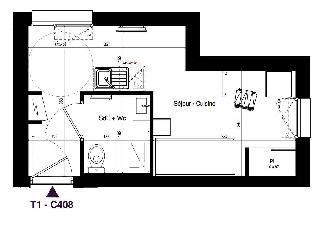 114 247€ Appt. Studio 17.91m2 1er