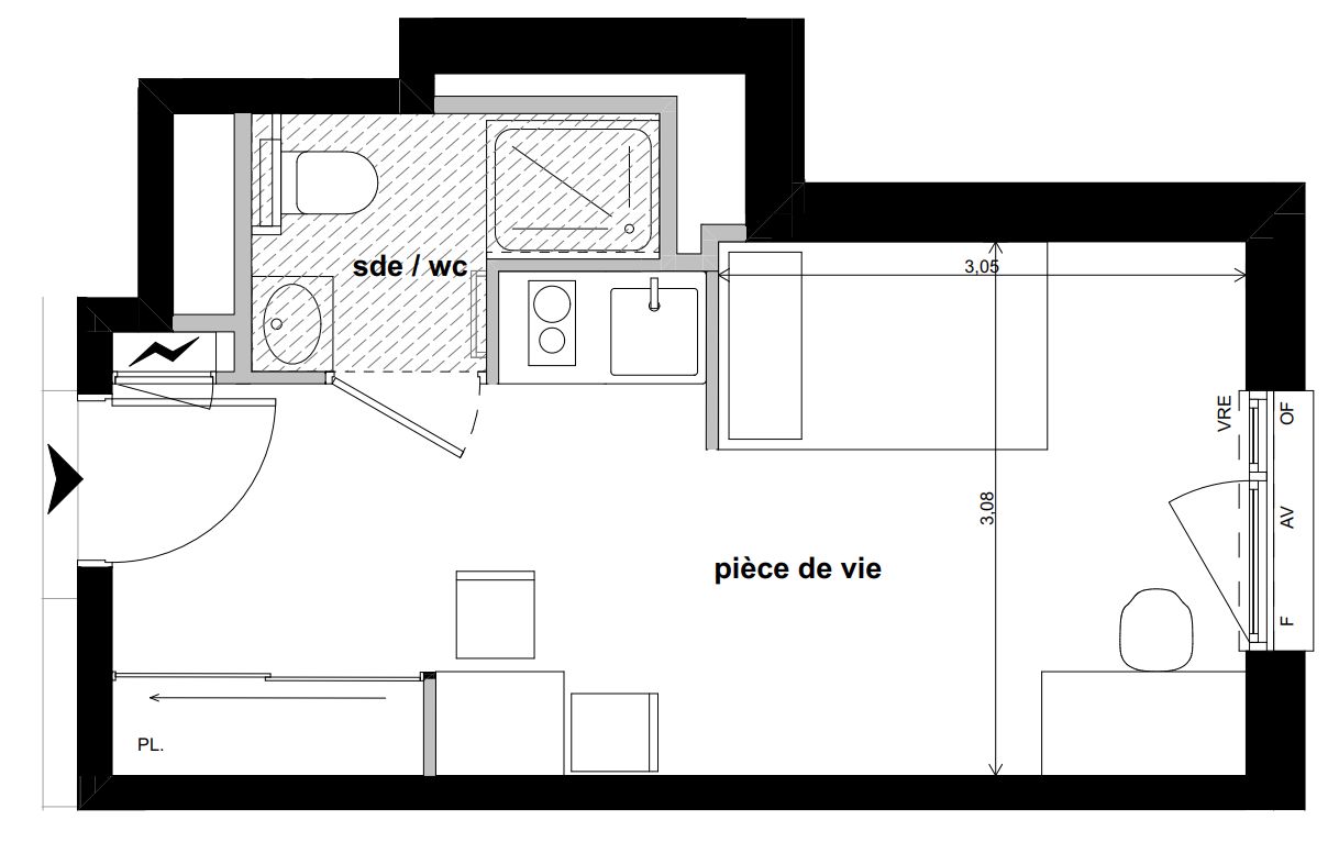 Les studios tous meublés et équipés, sont complétés par des espaces partagés : cuisine et salle commune, terrasse paysagée et laverie.