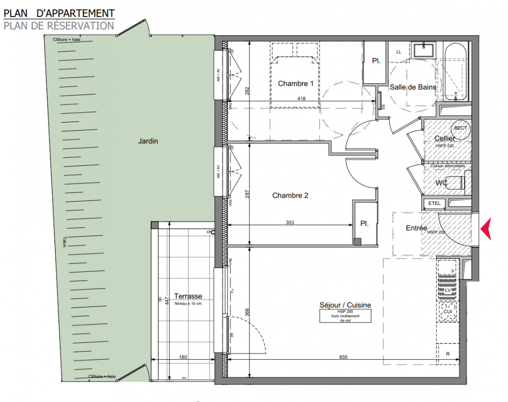 287 000€ Appt. T3 62.79m2 0-RDC