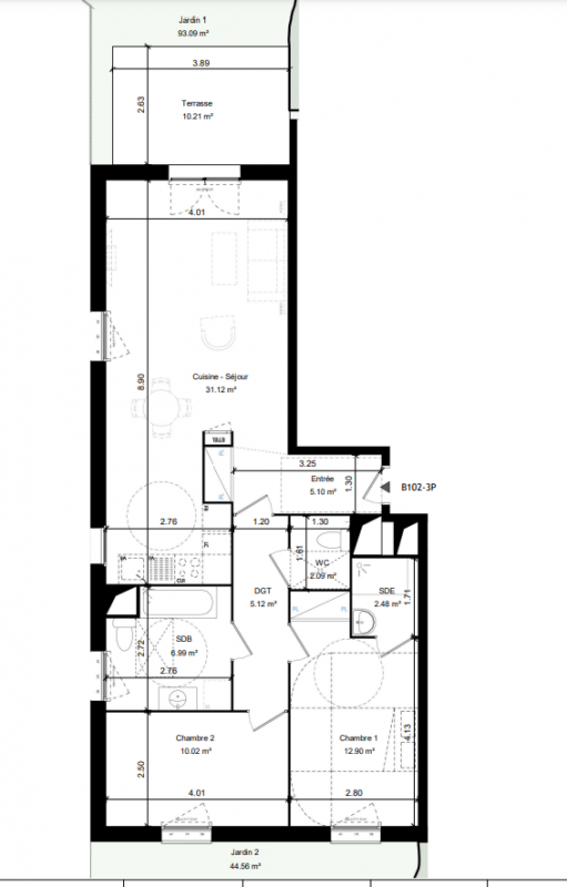 230 500€ Appt. T3 62.3m2 1er