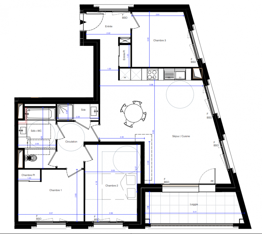 *Pour les logements du bâtiment T1 : brise-soleil à lames orientables.