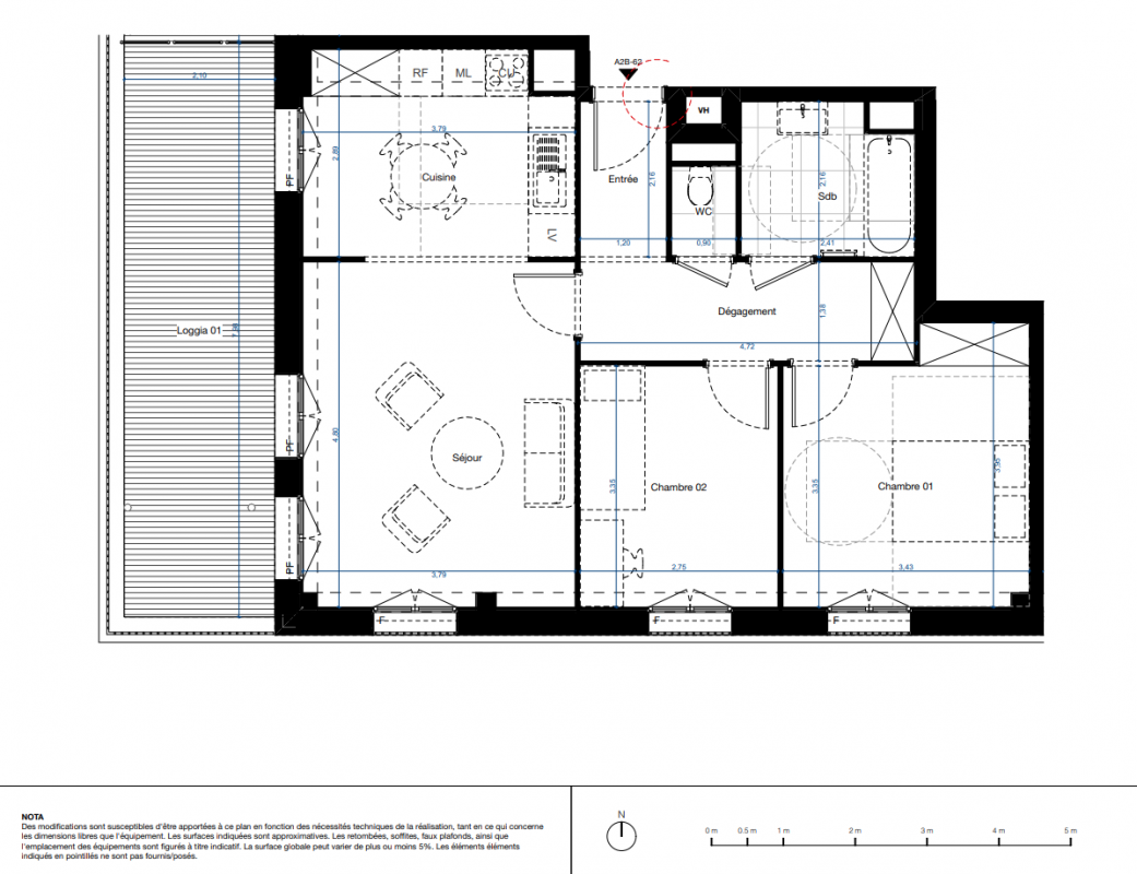 *Pour les logements du bâtiment T1 : brise-soleil à lames orientables.