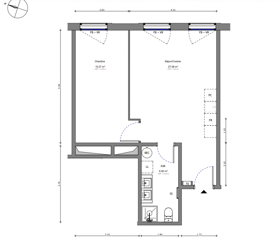 392 000€ Appt. T2 49.27m2 4ème