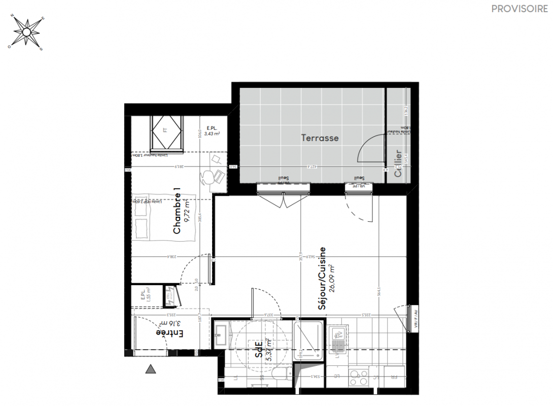 236 900€ Appt. T2 43.13m2 0-RDC