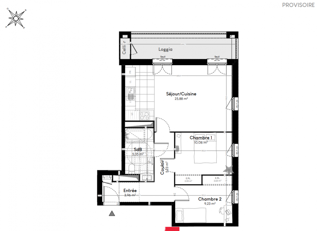 289 900€ Appt. T3 56.83m2 1er