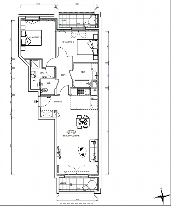 318 483€ Appt. T3 68.17m2 2ème