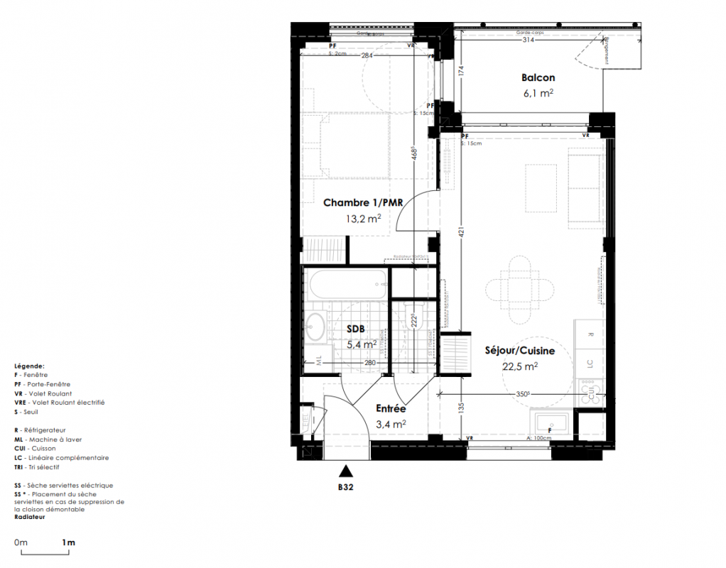 336 000€ Appt. T2 46.5m2 0-RDC