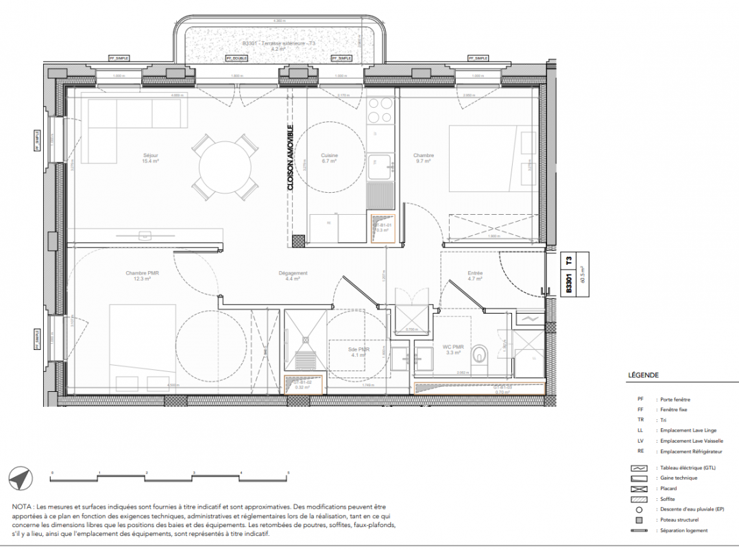 325 400€ Appt. T3 60.3m2 3ème