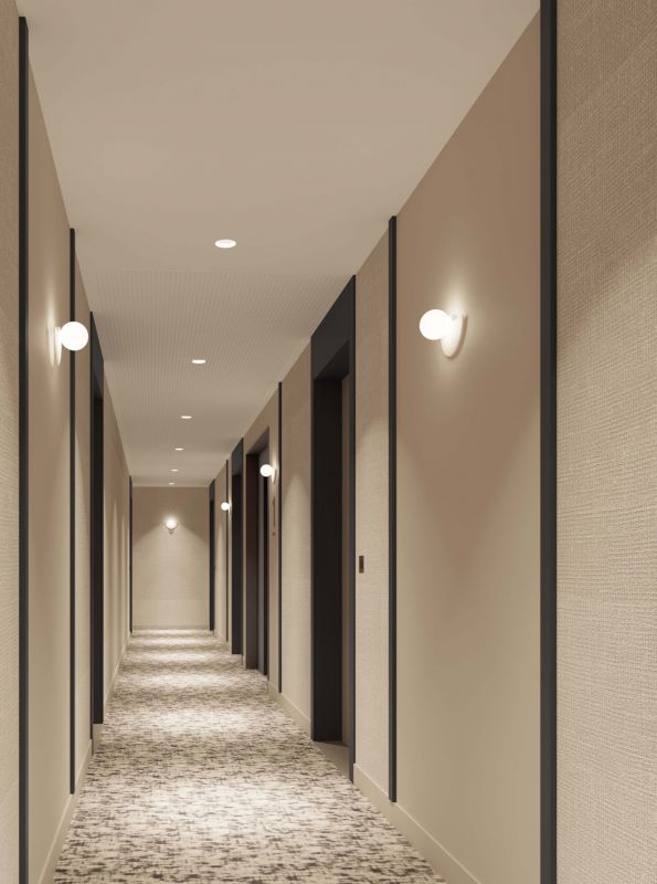 Chape acoustique Parquet chêne dans les pièces sèches Carrelage grand format dans les pièces humides Faïence grand format toute hauteur sur les murs...