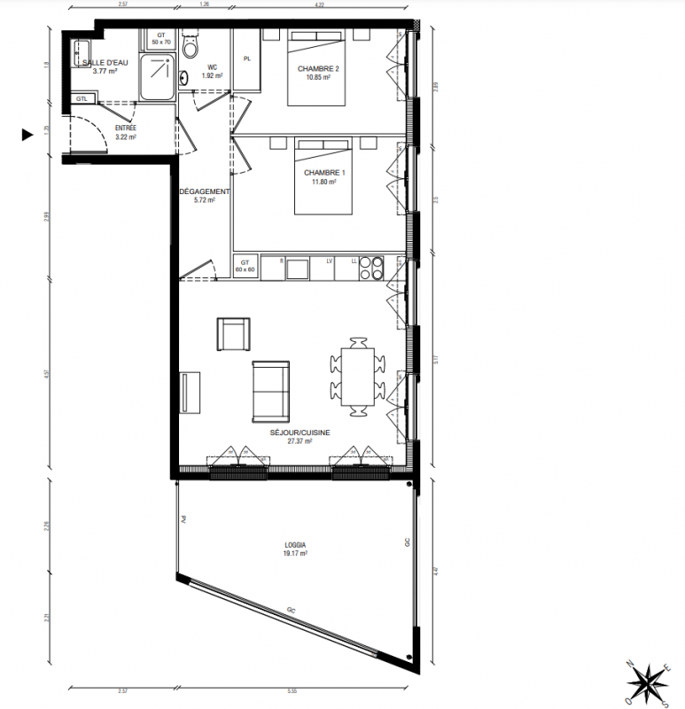 423 128€ Appt. T3 64.85m2 2ème