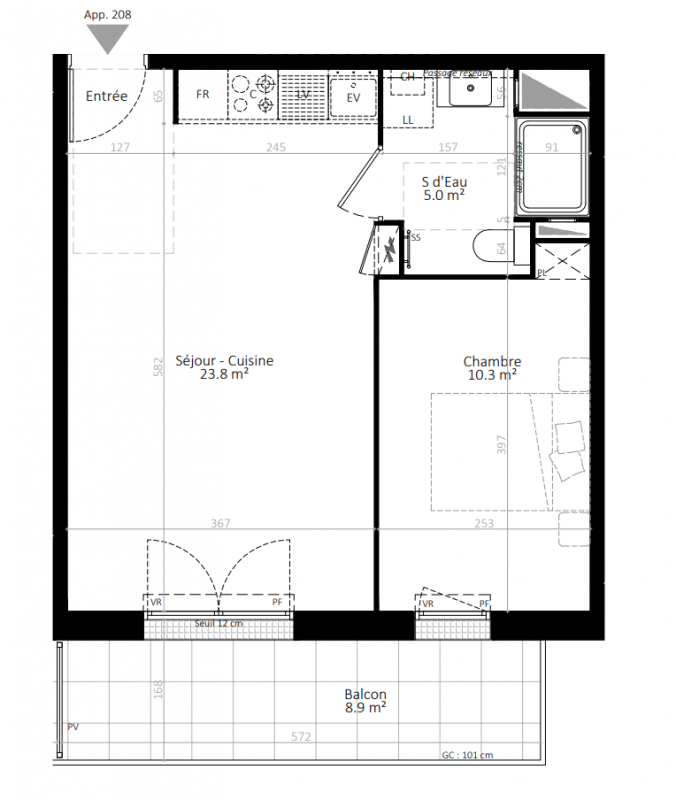 223 393€ Appt. T2 41.4m2 2ème