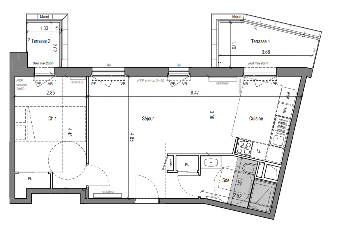 470 000€ Appt. T2 45.26m2 1er