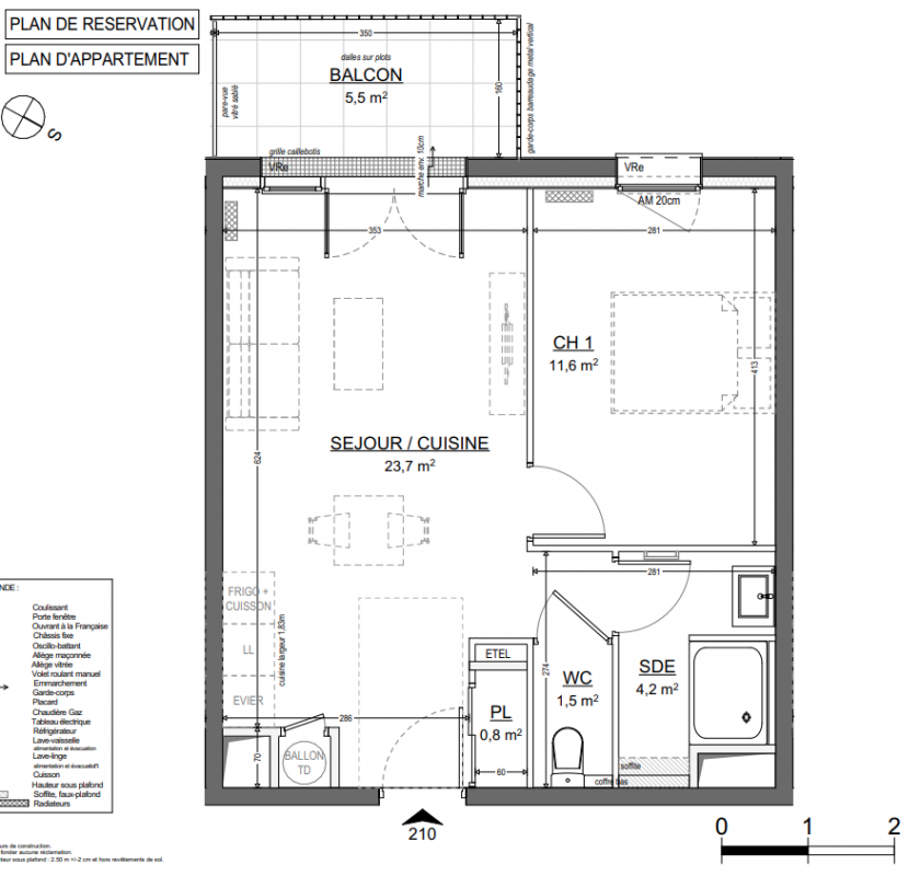 128 000€ Appt. T2 42.17m2 1er