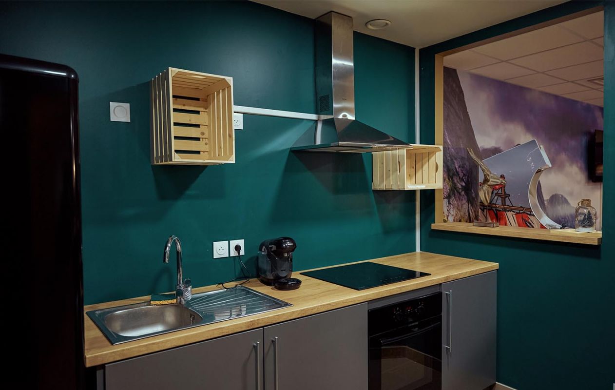 Située à Petit-Quevilly, une ville limitrophe de Rouen, l'établissement bénéficie d'un emplacement idéal entre deux arrêts de métro qui permettent de rejoindre le centre-ville de Rouen ainsi que l'IUT - Campus Pasteur, YNOV Campus et Sup'Business School en 20 minutes seulement. Les commerces et les services de proximité sont également tout proches. La résidence de 2021 est composée d'appartements meublés et équipés de façon à offrir aux étudiants un lieu de vie calme et chaleureux. Véritable lieu de vie pensée pour favoriser les rencontres et les échanges, la résidence propose également de nombreux espaces de coliving dans une ambiance fortement inspirée des décors médiévaux, mêlant mobilier design et runes vikings : salle commune avec grande cuisine équipée, salon aménagé avec babyfoot, différents espaces de coworking et de détente...