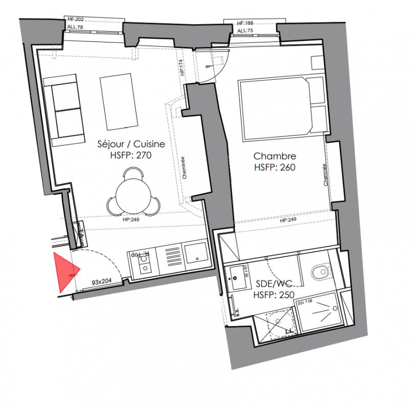 243 925€ Appt. T2 39.5m2 3ème