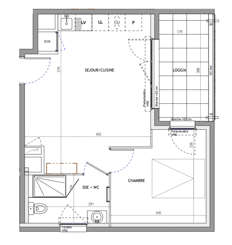 212 000€ Appt. T2 39.3m2 1er
